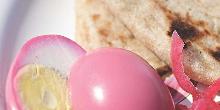 | Pickled Eggs Recipe | EatingWell cloves, bay leaf, beetroot, onion, eggs, apple cider vinegar, salt, sugar These tangy hard-boiled eggs are a snap to make. Sliced in half, the fuchsia “white” surrounding the bright yellow yolk is dazzling. Wrap some egg slices and onions in a flatbread ...