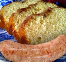 | Tomato and spicy sausage baked eggs with cornbread recipe | delicious. magazine butter, red onion, red pepper, chorizo sausage, cornstarch, olive oil, green chili, tomato, eggs, baking powder, cheddar cheese, milk, flour Make the cornbread. Preheat the oven to 200 C/fan180 C/gas 6. Grease a 16cm x 25cm shallow roasting tin. Mix the flour, cornmeal, baking powder, chillies, cheese and a pinch of salt in a large bowl. B...