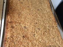 | Homemade granola bars butter, dried cranberry, oatmeal, almond, vanilla extract, date, coconut, apricot, salt, honey, brown sugar 1) Preheat the oven to 180C/Gas mark 4. Butter an 20 by 27cm baking dish and line it with greaseproof paper. 2) Toss the oatmeal, almonds and coconut together on a sheet pan and bake for 10 to 12 min...