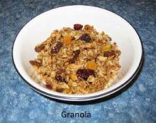 | Granola Cereal Recipe by Microwave.Lady | ifood.tv wheat germ, oats, nuts, vanilla, cinnamon, coconut, raisin, honey, brown sugar MAKING 1) Take a small microwave safe, measure up bowl. Add honey, vanilla and cinnamon and microwave at HIGH for 30 seconds. 2) Take a 2 L (8 cup) casserole, mix oats, nuts, wheat germ, brown sugar...