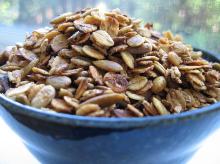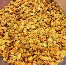| Homemade Granola Recipe - Food.com pumpkin seeds, cereal, olive oil, oats, sunflower seeds, almond, vanilla extract, sesame seed, nutmeg, cinnamon, berries, honey, maple syrup, apple juice My husband found this recipe in a mountain bike magazine that we changed just a bit. This granola is really easy to make and very good. You can use oats, but I like to use multi-grain hot cereal that ...