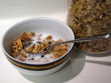 | Healthy Homemade Granola Cereal Recipe - Food.com oil, wheat germ, oats, sunflower seeds, pecan, vanilla, cinnamon, raisin, salt, honey, brown sugar, water Good as a snack or as a cereal! High in GOOD fat and high in fiber. Serving Size: 1 (42) g Servings Per Recipe: 24 AMT. PER SERVING % DAILY VALUE Calories: 157.6 Calories from Fat 58 g 37 % Total...