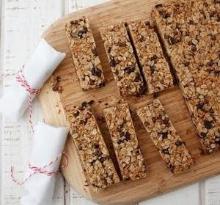 | Healthy Snack Recipes for Kids - Peanut-Butter Granola Balls dried fruit, butter, rice cereal, oats, peanut butter, honey These work well as after-school snacks. In a small saucepan over medium flame, heat honey, peanut butter, and butter. Stir until loosened and smooth, 1 to 2 minutes. Remove from heat; stir in cereal, ...