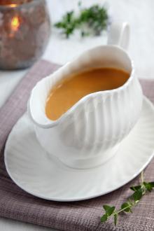 | Sumptuous Homemade Gravy - Vegetarian Society yeast, vegetable stock, thyme, pepper, mustard powder, bay leaf, onion, celery, wholewheat flour, soy sauce, vegetable fat spread Browse hundreds of recipes the Vegetarian Society has built to make eating vegetarian tastier, healthier and easier for everyone. Heat the margarine in a large saucepan and gently fry the onion for 2-...