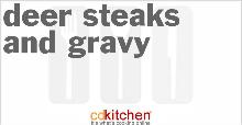 | Deer Steaks And Gravy Recipe | CDKitchen.com pepper, onion, venison, salt, fat, milk, flour A recipe for Deer Steaks And Gravy made with venison steak, bacon drippings, all-purpose flour, milk, onion, salt and Heat bacon drippings in a medium skillet on medium heat. Add venison steaks. Seaso...