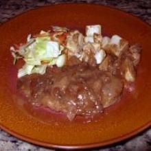 | Steak N Gravy Recipe beef steak, pepper, onion, beef, water A beef dish that my family loves, you can make as much or as little as you need or want. Cut round steak into serving size peices. Add to crock pot with rest of the ingredients. Cook 4-6 hours on low....