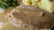 | Gravy-Baked Pork Steaks | Recipes Wiki | Fandom butter, pork chop, evaporated milk, beef stock, mushroom soup, soy sauce, water This red-hot, sauce-based dish starts with real pork, cream of mushroom soup, and milk, and delivers a steamy, flaming-hot flavor. Parsley and garlic always work for this for garnishing, too. 4 pork c...