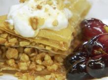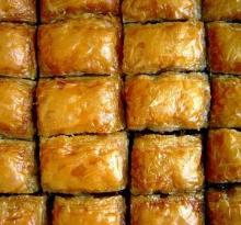 | Classic Greek Baklava – Recipes Network butter, phyllo pastry, olive oil, walnut, vanilla extract, cinnamon, grape, honey, sugar, yogurt (plain), water Step 1 Preheat oven to 350 degrees F. Butter the bottoms and sides of a 9 by 13-inch pan. Step 2 Mix the nuts with cinnamon, 1/4 cup sugar, and 1/4 cup of melted butter. Set aside. Unroll the phyll...