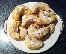 Sweet Biscuits Recipe by Greek.Cookery | ifood.tv oil, walnut, almond, vanilla, eggs, baking powder, sugar, flour In a large bowl mix all ingredients, adding enough flour to make a dough that can be shaped. Pat into narrow loaves about 1 inch high and 6 to 8 inches long. Place on baking sheet and bake in a 350 ...