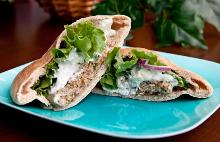 Greek Chicken Burgers chicken, feta cheese, pitta bread, mint, tomato, lettuce, eggs, yogurt (plain) Tangy feta cheese and fresh mint dress up ground chicken in this flavorful and fast Greek Chicken Burger recipe. Step 1 Cut off 1/3 piece of each pita and grate on fine side of grater or pulse in food...
