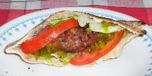 | Greek-Style Burgers Recipe - Food.com feta cheese, pitta bread, olive, tomato, lettuce, burger, steak sauce, mayonnaise, lemon juice Greek-style feta and olive spread served with hamburgers in pita bread! Use whatever kind of ground meat you like for the hamburgers (beef, lamb, turkey). We have made these with ground turkey with gr...