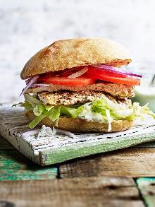 | Greek Chicken Burger Recipe | Olive Magazine chicken breast, red onion, feta cheese, olive oil, oregano, lemon, garlic, tomato, cucumber, lettuce, bread, yogurt (plain) This Greek chicken burger recipe is a quick and easy meal for one for under 500 calories. Try this chicken burger for a speedy midweek supper STEP 1 Butterfly the chicken by cutting horizontally thro...