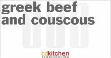 | Greek Beef And Couscous Recipe | CDKitchen.com feta cheese, beef stock, olive oil, oil, pepper, oregano, onion, garlic, tomato, beef, cous cous, meat A recipe for Greek Beef And Couscous made with olive or vegetable oil, beef boneless sirloin, onion, garlic, beef broth, couscous, Roma Heat oil in 10" skillet over medium high heat. Cook beef, o...