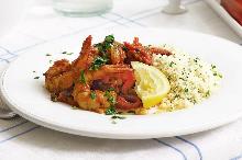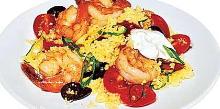 | Greek-style prawns with herbed couscous - Recipes - delicious.com.au olive oil, turmeric, paprika, coriander leaf, cinnamon, cumin, lemon, sultana, onion, tomato, capsicum pepper, prawn, cous cous This aromatic prawn dinner makes simple week nights into special occasions. 1. Place the couscous in a heatproof bowl and cover with 1 1/2 cups (375ml) boiling water and 1 teaspoon salt. Cover with a...