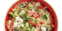 | Greek Couscous Recipe | MyRecipes red onion, feta cheese, olive oil, pepper, oregano, chickpea, olive, tomato, cucumber, salt, cous cous, lemon juice, water Learn how to make Greek Couscous. MyRecipes has 70,000+ tested recipes and videos to help you be a better cook. Instructions Checklist Step 1 Bring 1 1/2 cups water to a boil in a medium saucepan; s...