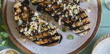 | Best Greek Grilled Eggplant Recipe-How To Make Greek Grilled Eggplant —Delish.com feta cheese, chili dried/powder, olive oil, pepper, oregano, aubergine/eggplant, balsamic vinegar, salt Looking for an easy eggplant recipe? This Greek Grilled Eggplant from Delish.com is the best! Preheat grill to 375o. Place eggplant, cut-side up, on a baking sheet and sprinkle each side with salt. L...