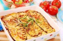 Greek Eggplant Casserole Recipe | SparkRecipes tomato sauce, feta cheese, cooking wine, ground beef, onion, garlic, aubergine/eggplant, parmesan cheese, milk, flour Easy to make and so delicious! Slice eggplant very thinly. Brown ground turkey with onion and garlic. When brown, add tomato sauce and red wine. Let simmer for 15 minutes. Layer eggplant then meat mix...