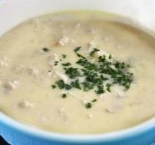 | Greek Lemon Soup Recipe by Chef.Foodie | ifood.tv egg yolks, msg, chicken stock, cornstarch, pepper, parsley, cayenne pepper, lemon, salt, cream In a saucepan combine 16 oz. chicken stock, 12 oz. single cream. Heat over a low heat stirring constantly. Stir in 1 tablespoon of cornflour which has been dissolved in 1 tablespoon water. Cook unt...