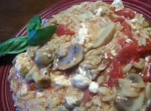 | Greek Mushroom Orzo Recipe - Food.com orzo pasta, feta cheese, chicken stock, olive oil, mushrooms, tomato, water A blend of mushrooms, tomatoes and orzo with a swirl of feta. Serving Size: 1 (412) g Servings Per Recipe: 4 AMT. PER SERVING % DAILY VALUE Calories: 312.3 Calories from Fat 62 g 20 % Total Fat 7...