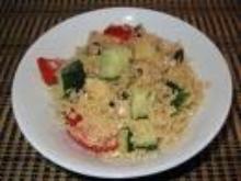| Couscous Salad Greek Style Recipe | SparkRecipes feta cheese, chicken stock, goat's cheese, olive oil, pepper, oregano, spring onion, tomato, cucumber, salt, cous cous, orange juice, lime juice Easy, delicious and healthy Couscous Salad Greek Style recipe from SparkRecipes. See our top-rated recipes for Couscous Salad Greek Style. Boil OJ and broth. Turn off heat and add couscous and put the...