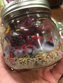 Overnight Oats with Berries, Greek Yogurt and Honey Recipe | SparkRecipes chia seed, pumpkin seeds, oatmeal, coconut, berries, fat, honey, milk, yogurt (plain) Great breakfast on the go. Make 5 ahead of time for everyday of the week. Coming all ingredients in a jar and refrigerate overnight. Serving Size: Makes a 1 serving jar Number of Servings: 1 Recipe ...