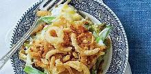 | Green Bean Casserole Recipe | MyRecipes fried onions, mushroom soup, pepper, green beans, soy sauce, milk It's the dish everyone's expecting on the holidays, but it's so easy to make, you can serve it any day. Our green bean casserole is a simple mixture of green beans, French fried onions, an...
