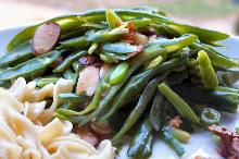 | Green Beans and Almonds | Healthy Recipes Wiki | Fandom olive oil, almond, pepper, onion, green beans, salt Prep Time: 10 minutes Cook Time: 20 minutes Yields: 4-6 servings Put a new twist on the classic green bean with richly sauteed onions and almonds. 1 package thawed cut green beans (fresh works too) 1 ...