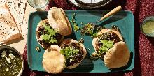 | Best Lamb Burgers With Mint Green Tea Pesto Recipe - Delish ground lamb, feta cheese, pitta bread, olive oil, almond, pepper, parsley, mint, coriander leaf, shallot, garlic, garden rocket, salt, green tea This pita is PACKED. Gently mix all ingredients in a bowl until well combined. Form into 6 patties to fit pita, about 1⁄2 inch thick. Heat pan over medium high heat. Add olive oil, and cook ea...