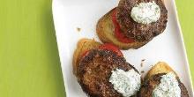 | Open Faced Burgers with Horseradish Sauce and Green Beans Recipe red onion, ground beef, olive oil, pepper, parsley, horseradish, green beans, tomato, salt, mayonnaise, bread Cook patties first, then, in the same skillet, saute onion and green beans. Place the burgers on toast with a creamy sauce, and dinner's ready with only one pot to clean up. Form beef into four pa...