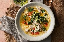 | Chicken and risoni soup with greens and gremolata recipe - Recipes - delicious.com.au olive oil, parsley, bay leaf, lemon, olive, carrot, onion, garlic, tomato, spinach, whole chicken Ah, chicken soup, the warming winter classic. You can't beat this combo of risoni, chicken and veggies, particularly during chilly weather. 1. For gremolata, place ingredients in a bowl, season a...