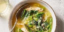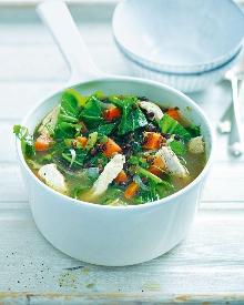 | Quick lentil, chicken, spring greens and broccoli soup recipe | delicious. magazine chicken breast, spring greens, chicken stock, olive oil, parsley, lemon, carrot, onion, celery A soup recipe that's anything but boring – this quick shortcut supper is bursting with spring vegetables, lentils and chicken which is poached until tender in the flavoursome broth. Heat a g...