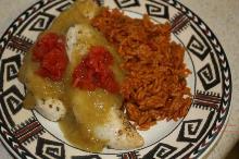 | Green Chile-Chicken Enchiladas Recipe | MyRecipes chicken breast, chicken stock, cooking spray, oregano, green chili, bay leaf, onion, garlic, salt, monterey jack cheese, cheddar cheese, tortilla, sour cream New Mexicans prefer these over the beef enchiladas associated with other Southwest cuisines. Prepare the sauce and the chicken mixture up to two days ahead, and refrigerate separately until ready to a...