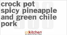 | Spicy Crock Pot Pineapple And Green Chile Pork Recipe | CDKitchen.com white bean, tomato paste, chili dried/powder, green chili, cumin, dried garlic, pineapple, onion, tomato, pork, water A recipe for Spicy Pineapple And Green Chile Pork made in the crock pot made with pork, white beans, water, tomatoes, tomato paste, pineapple chunks, green chiles, onion In a 3 1/2-quart electric slow...