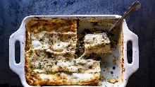 | Green Lasagna Recipe | SparkRecipes egg whites, tomato sauce, ricotta cheese, olive oil, canola oil, pepper, parsley, nutmeg, onion, garlic, spinach, parmesan cheese, mozzarella cheese, pasta This lasagna replaces meat with spinach, making it much more healthy. Preheat the oven to 350*F. Cook the lasagna noodles in salted boiling water for 8 minutes. (Adding 1 tsp canola oil to the water w...