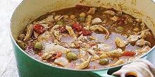 | Chicken Stew with Green Olives Recipe | MyRecipes chicken, chicken stock, olive oil, almond, turmeric, pepper, paprika, cumin, lemon, olive, onion, garlic, tomato, salt This Mediterranean-style chicken stew gets its rich and savory flavor from garlic, cumin, and turmeric. The chicken is cooked with tomatoes and green olives and topped with toasted almonds, making it ...