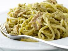 | Spaghetti with Tuna & Green Olive Pesto Recipe | SparkRecipes olive oil, walnut, pepper, parsley, basil, lemon, olive, garlic, tuna, salt, parmesan cheese, pasta I found this on KitchenDaily.com Bring a large pot of salted water to a boil. Meanwhile, in the bowl of a food processor, combine olives, basil, parsley, walnuts, garlic and pinch salt; blend until fi...