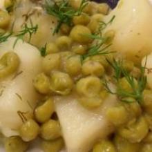 | Dill-lemon Potatoes And Green Peas Recipe chicken stock, dill, dried onion, peas, potato, lemon juice, flour Fresh peas can be used instead of frozen, but not canned. Use spring onions and fresh dill to make this a really "spring-y" dish. Cook potatoes in chicken broth for 10 minutes or until almos...