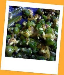 | Green Peas With Onion And Garlic Recipe butter, pepper, peas, onion, garlic, salt, water This is a fast and easy fix up for frozen green peas. You can add a pinch of your favorite herb to them, like basil, tarragon or marjoram Heat butter in saucepan that has a tight fitting lid; add gar...