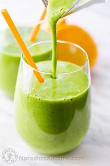 | Green Smoothie, Green Smoothie Recipe - NatashasKitchen.com chia seed, banana, pineapple, coconut milk, orange, spinach This power green smoothie was love at first sip. This recipe is simple, seriously healthy and sooo refreshing. A must try! Place everything in a blender in the order listed, starting with the liquid a...