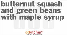 | Butternut Squash And Green Beans With Maple Syrup Recipe | CDKitchen.com butter, oil, almond, pepper, allspice, butternut squash, green beans, salt, maple syrup A recipe for Butternut Squash And Green Beans With Maple Syrup made with butternut squash, salt and pepper, vegetable oil, fresh green beans, butter, almonds Place the squash cubes on a large baking p...