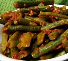 | Green Beans in Tomato Salsa Recipe - Food.com tomato paste, olive oil, pepper, onion, garlic, green beans, tomato, salt My mum came up with this dish. It was supposed to make vegetables taste better when I was a kid. I think it worked! Serving Size: 1 (234) g Servings Per Recipe: 4 AMT. PER SERVING % DAILY VALUE Cal...