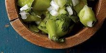 | Green Beans with Plum Tomato Salsa red onion, olive oil, mint, jalapeno, green beans, tomato, salt, lemon juice Step 1 Prepare salsa: In medium bowl, stir tomatoes, onion, lemon juice, jalapeno, oil, mint, and 1/2 teaspoon salt until combined. Let salsa stand at room temperature at least 30 minutes or up to 1 h...