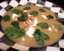 | Chilled Cream Of Green Tomato Soup Recipe green tomato, heavy cream, chicken stock, olive oil, curry powder, white peppercorn, mint, potato, onion, garlic, salt, sugar, sour cream CHILLED CREAM OF GREEN TOMATO SOUP In large saucepan over medium low heat combine oil, garlic, onion and curry powder. Cook stirring frequently for 5 minutes then add tomatoes, potato, broth, mint a...