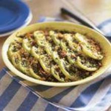 | Green Bean Casserole Recipe goat's cheese, olive oil, pepper, parsley, button mushroom/champignon, onion, green beans, balsamic vinegar, soy sauce, cream cheese, bread crumbs, brown sugar Updated family classic with fresh vegetables and creamy cheeses. Start with fresh whole beans, trimmed or frozen green beans. Cook in a small amount of boiling water - just enough to cover - for about...