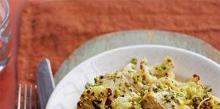 | Chicken with Caramelized Cauliflower and Green Olives Recipe chicken breast, lemon peel, olive oil, almond, pepper, parsley, olive, cauliflower, salt Cauliflower gains incredible sweet flavor when roasted. Here, it is paired with healthy chicken and tossed in a homemade olive, almond, and parsley pesto-like sauce. Step 1 Preheat oven to 450 degrees...