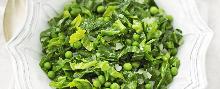| Peas with greens recipe | Olive Magazine butter, chicken stock, peas, onion, garlic, white wine We love frozen peas. For a quick and easy side dish, try this simple recipe of simmering shredded greens and peas in stock and white wine. So simple, so good. STEP 1 Heat the butter in a large, deep ...
