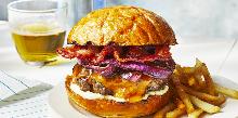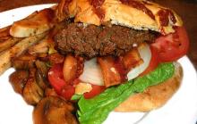 | Grilled Bacon Burgers Recipe - Food.com ground beef, pepper, onion, tomato, lettuce, eggs, bacon, soy sauce, tomato ketchup/catsup, cheese, bread These are delicious juicy burgers. Serving Size: 1 (170) g Servings Per Recipe: 5 AMT. PER SERVING % DAILY VALUE Calories: 378 Calories from Fat 180 g 48 % Total Fat 20.1 g 30 % Saturated Fat 7....