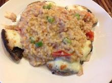 | Grilled Tomato Risotto With Roasted Portobello Mushrooms Recipe - Food.com butter, heavy cream, risotto rice, vegetable stock, olive oil, thyme, pepper, parsley, portobello mushroom, spring onion, onion, garlic, tomato, salt, parmesan cheese, mozzarella cheese, vegetable fat spread, white wine, cream, water This yummy dish is from Emeril Lagasse's in the episode Emeril's Vegetable Patch. I have tweaked it just a bit! Serving Size: 1 (428) g Servings Per Recipe: 8 AMT. PER SERVING % DAILY VALUE ...