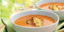 | Roasted Tomato Soup With Grilled-Cheese Croutons Recipe - Food.com butter, chicken stock, soup, olive oil, thyme, pepper, onion, garlic, tomato, salt, cheddar cheese, bread, whipped cream True comfort food! This soup is delicious and fairly simple to make! You will have multiple recipe requests after serving it! Serving Size: 1 (328) g Servings Per Recipe: 10 AMT. PER SERVING % DAILY...