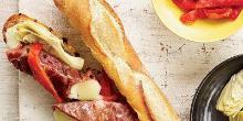 | Double Grilled Antipasto Sandwiches Recipe provolone, red bell pepper, dry cured ham, olive oil, garlic, artichoke, bread These gooey sandwiches get double-grilled: The prosciutto-wrapped provolone is grilled first before being sandwiched on grilled baguette. On a work surface, lay out the prosciutto on its paper. Lay 3 ...